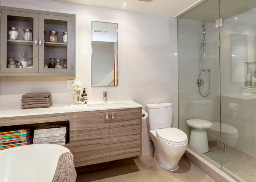 But on the inside, it's great. There are built-ins everywhere that don't look weird (sometimes, I am not a fan of built-ins because they can look out of place). The floors are great. The kitchen is good. The bathrooms are done really well.