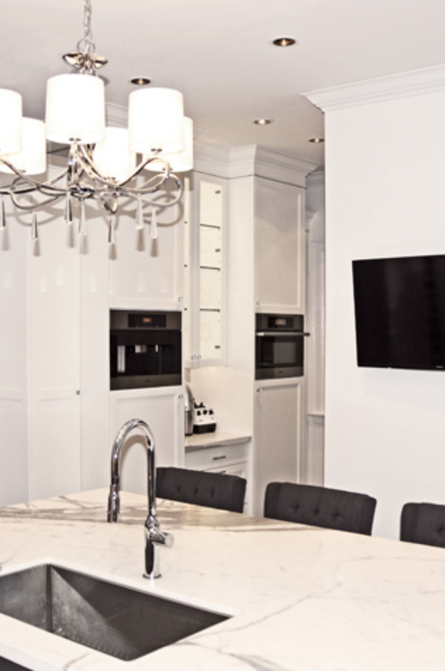 So, they took that tiny kitchen and made it a powder room and ‘survery’ (I think they meant servery) area and created a great kitchen with a big island in what was the family room area. And it’s great…