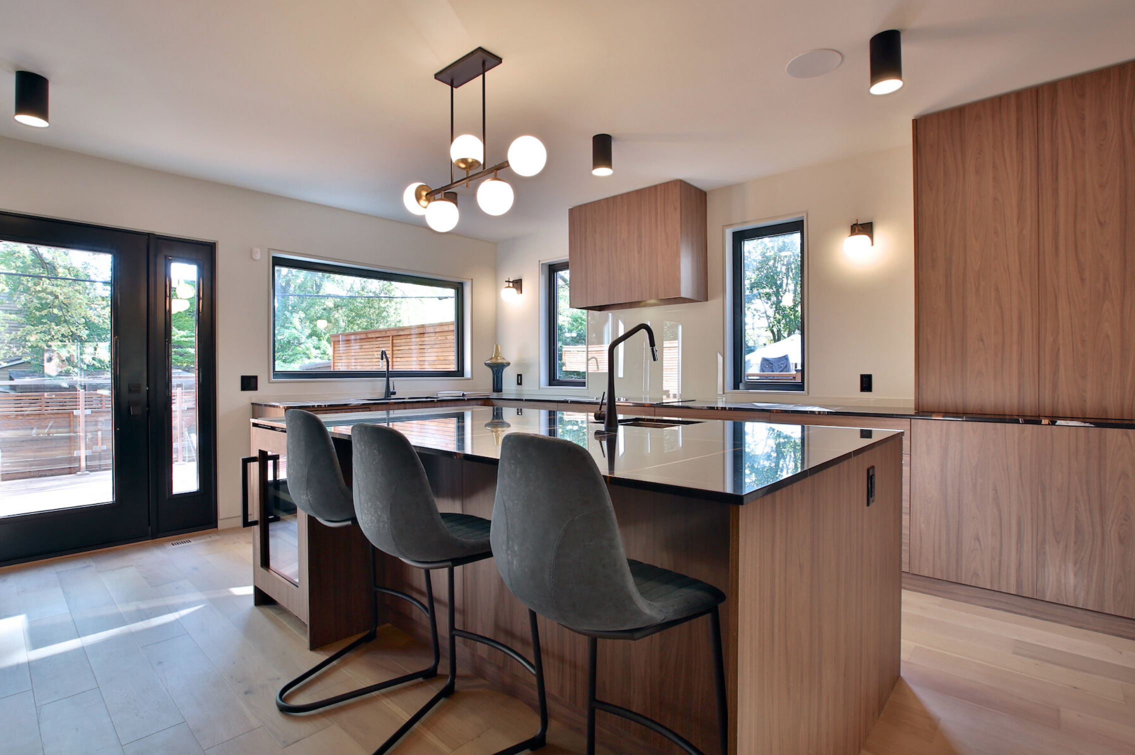 All the rooms are a good size with their own bathrooms and the basement has another bedroom with a large living area with a walkout to the backyard. But because of that walkout, there isn’t a lot of green space. It the backyard is all deck and concrete.