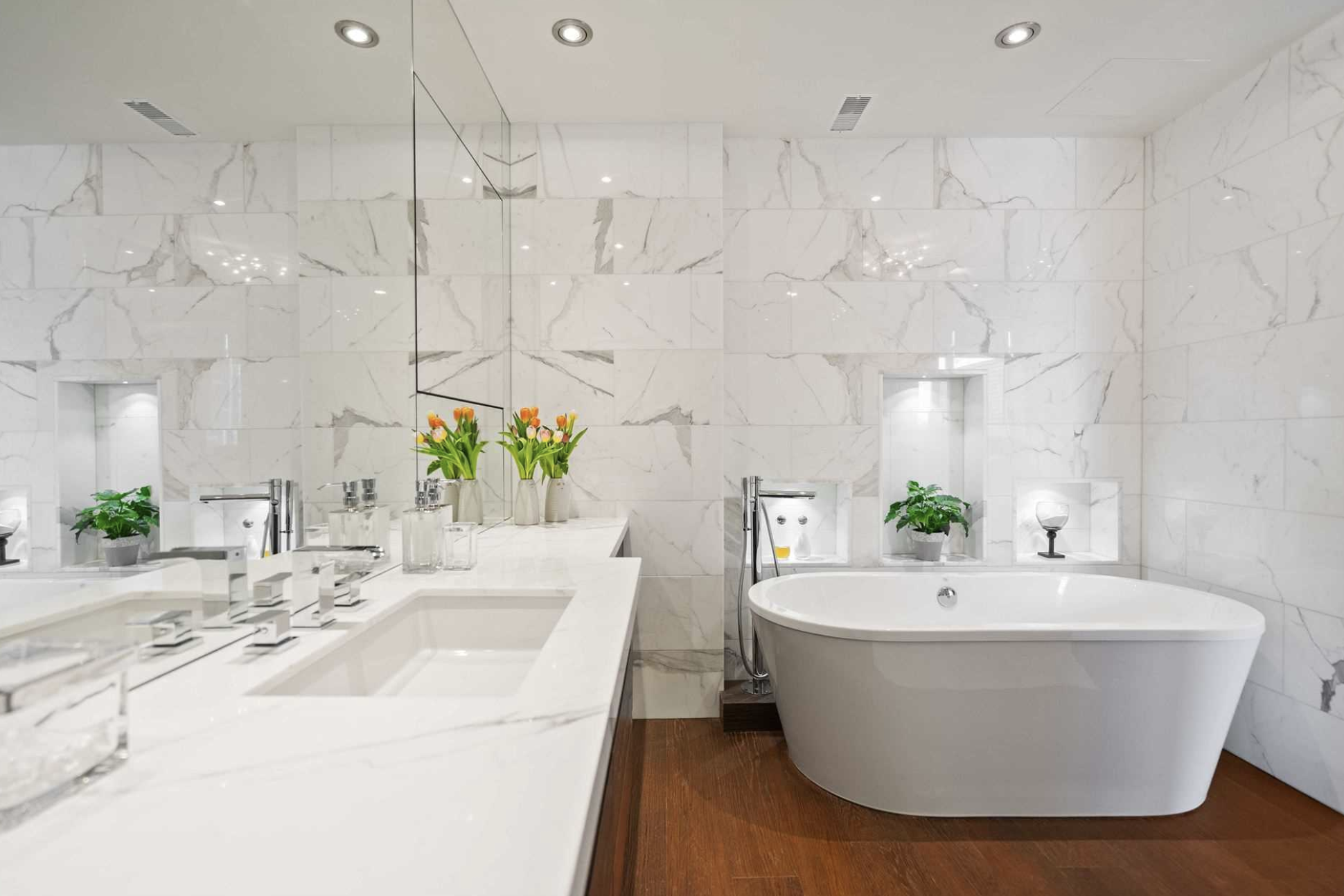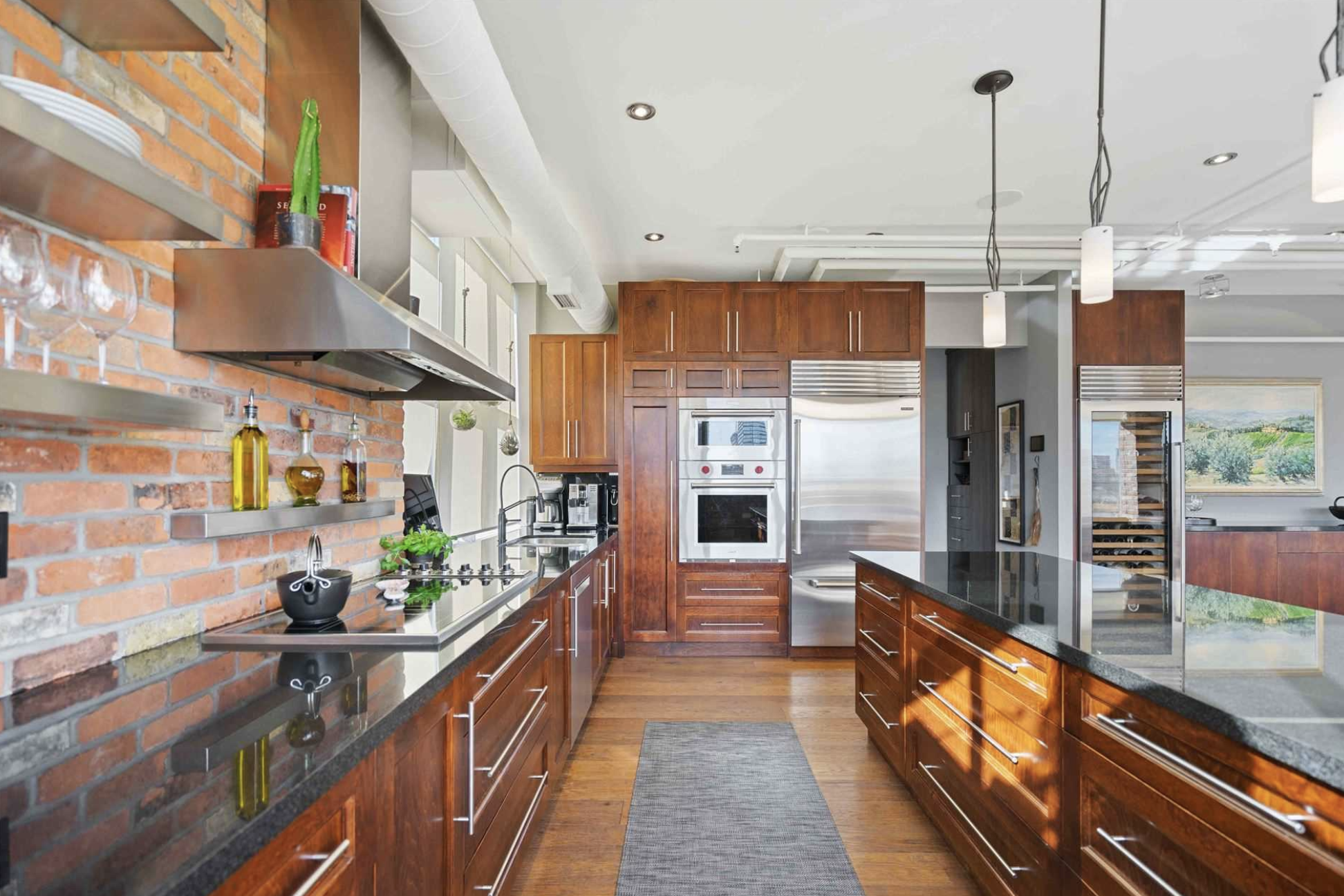 I could be wrong but I am guessing that this apartment has had some updates like the bathrooms and the floors. I’m not sure if the kitchen is the original or if that bar area with the huge wine fridge is also an add-on.