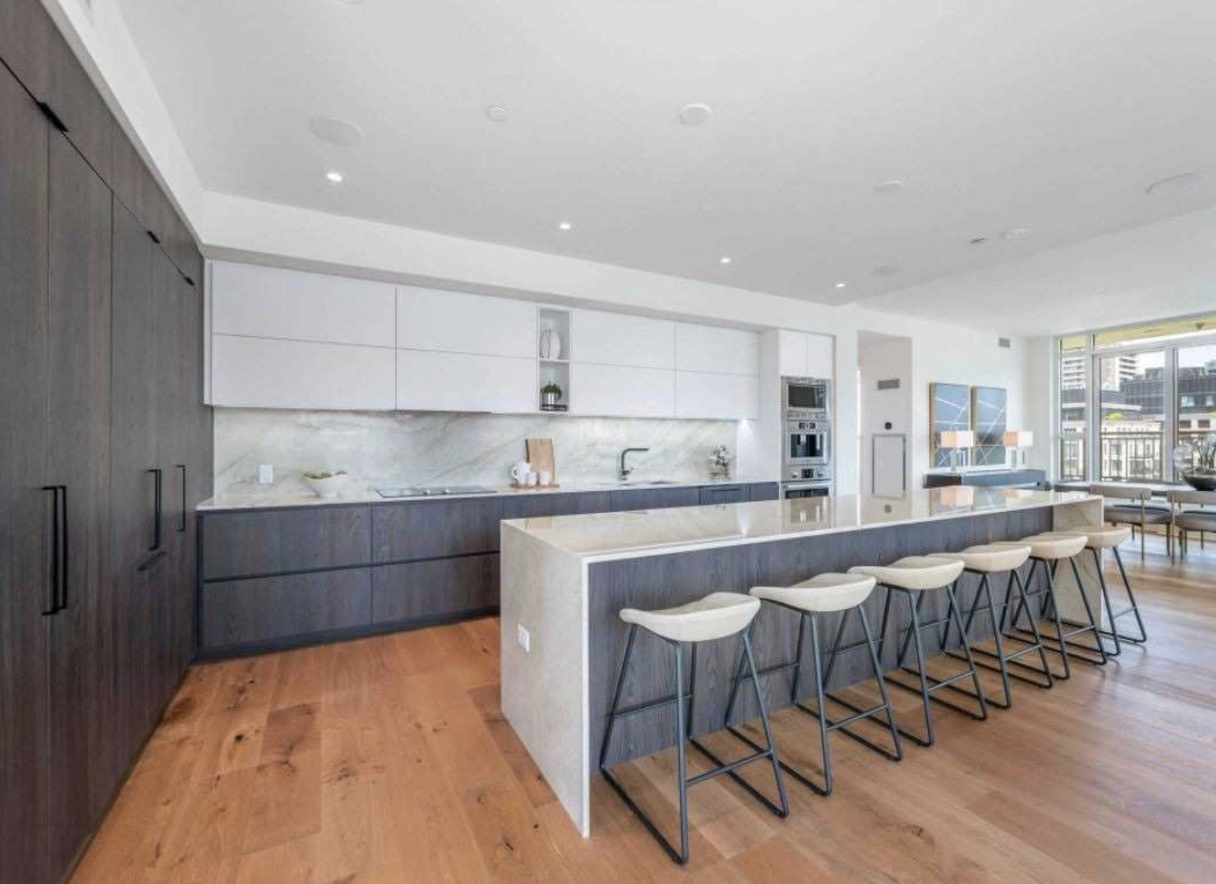 Overall, it is a well done condo with nice floors, a good kitchen and bathrooms, and floor to ceiling windows that look to be south and east facing.